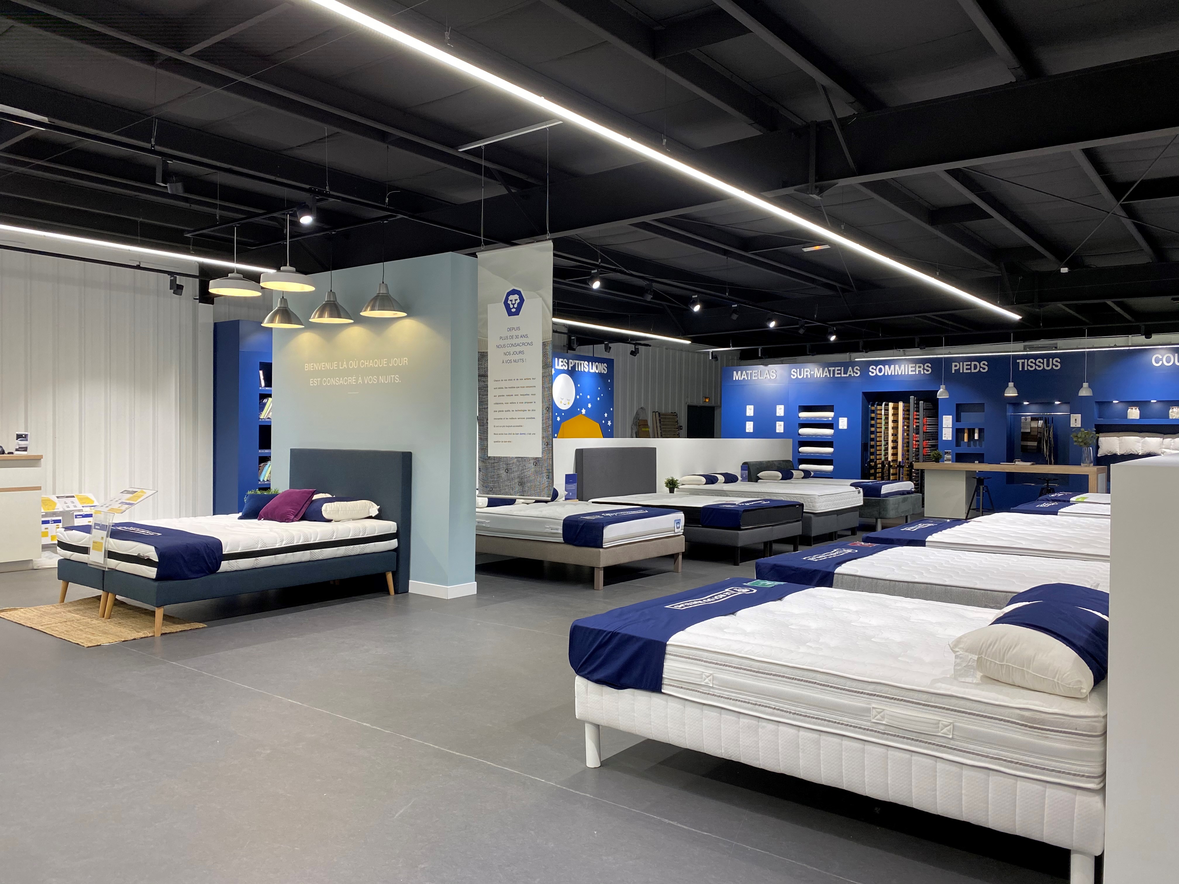 Une telle superficie permet de présenter une gamme complète de produits — matelas, sommiers, têtes de lit, accessoires — tout en offrant aux clients une expérience d’achat fluide et immersive. Elle facilite également la mise en scène des collections et la valorisation des innovations de la marque.